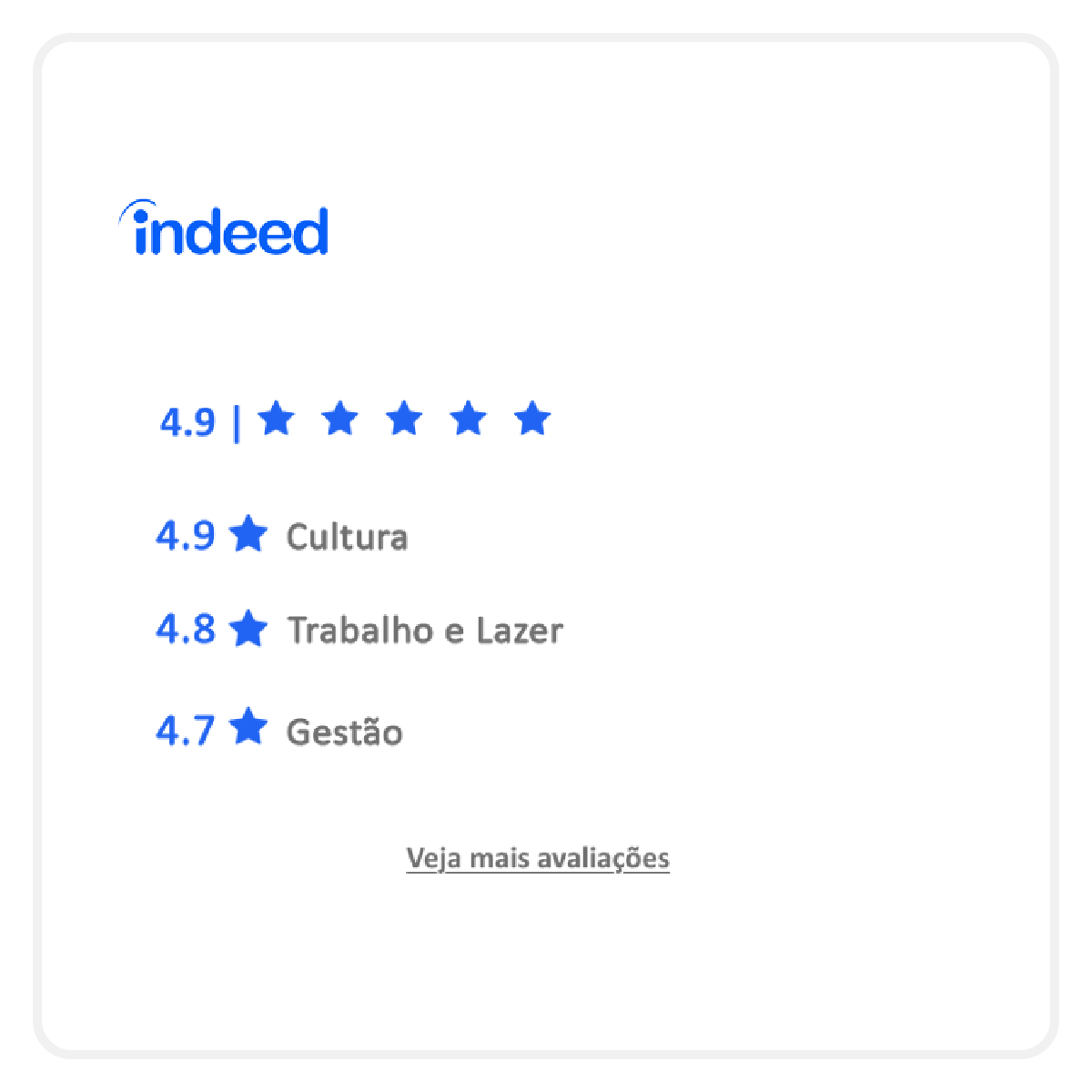 A cultura de feedbacks construtivos está no nosso DNA. Todos os nossos colaboradores recebem avaliação de performance periódica e têm contato com as Business Partners do time de Gestão de Pessoas. Além disso uma gestão de outsourcing à disposição em tempo real.